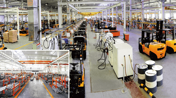 建立了國內(nèi)獨立的叉車研發(fā)及生產(chǎn)基地 擁有3條叉車總裝線、6條部套裝配線、2條油漆涂裝線和焊接機器人